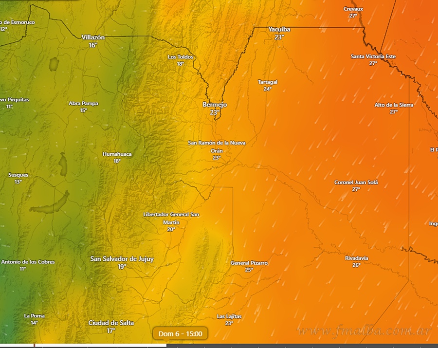 Conforme se acerque el 9 de Julio, comenzará el paso de un frente de tormenta que, inicialmente, sólo producirá lluvias significativas alrededor de las costas del Río de La Plata, nevadas y precipitaciones moderadas a abundantes. En lo que respecta al norte salteño, se pronostican registros predominantemente escasos a nulos, con focos aislados con valores moderados.