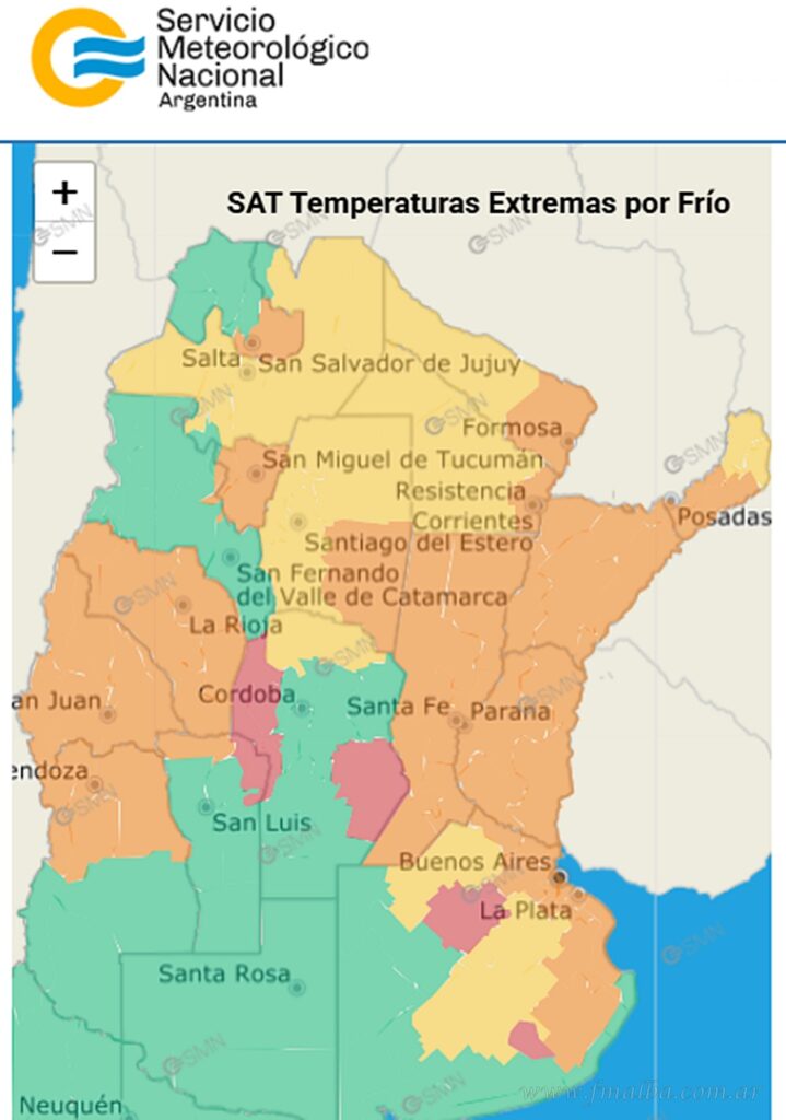 El Servicio Meteorológico Nacional registró a la ciudad de Maquinchao, provincia de Río Negro, como la ciudad con el valor más bajo de esta ola polar; con -19.2 °C en la mañana del martes 1 de julio. De aquí en adelante, el viento norte provocará cambios en los registros, llevando las temperaturas a valores más típicos de invierno de cara al fin de semana.