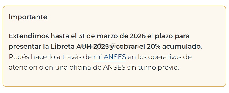 La Administración Nacional de la Seguridad Social anunció la extensión de la fecha límite para la entrega de la Libreta Asignación Universal por Hijo. Tanto el formulario como la Libreta AUH se pueden presentar ante cada jurisdicción provincial del país hasta el 31 de marzo de este año.