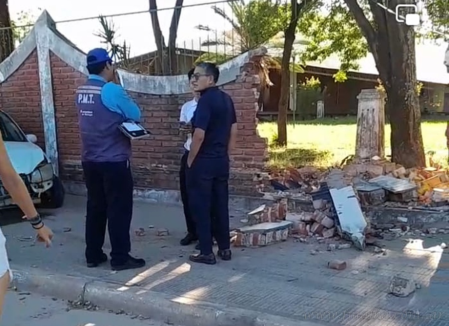 El informe policial del fin de semana detalló que los vecinos y transeúntes del lugar alertaron al Sistema de Emergencia 911 alrededor de las 8 de la mañana del Sábado Santo, sobre un choque ocurrido en la esquina de calles Aráoz y Pasaje Roffini, esquina de la Parroquia. Una mujer conducía un automóvil de color blanco y a pesar del impacto, chocar y derribar la pared, no registró lesiones.