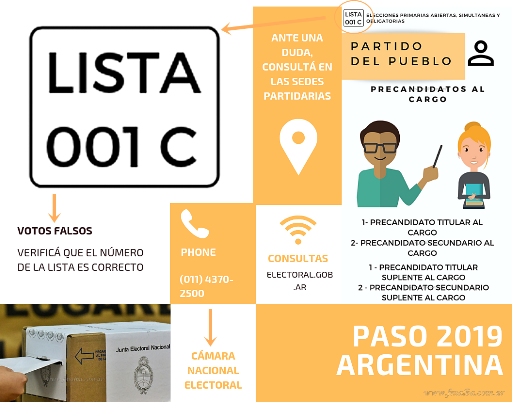 Este domingo 11 de agosto, la ciudadanía votará en las PASO; Primarias Abiertas, Simultáneas y Obligatorias; para definir a los candidatos para los comicios generales del 27 de octubre de 2019. Los precandidatos deben alcanzan el 1,5 % de los votos válidos.