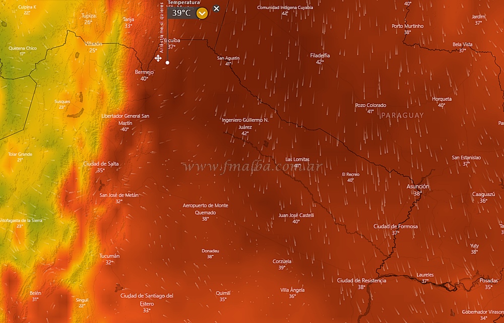 El pronóstico del Servicio Meteorológico prevé que la ola de calor se extenderá hasta el fin de semana. Varias localidades ha superado los 40°C, y en el caso de Tartagal tocó los 42 grados (Rivadavia 44.5°C, Orán 43.8°C, Las Lomitas 43.2°C, Santiago del Estero 42.5°C, Jujuy 42.1°C, Tucumán 40.7°C).