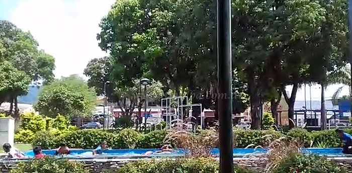 Allí se dieron conque un grupo de seis chicos de distintas edades disfrutaban de zambullidas en el agua de la fuente cercana al monumento del héroe que da nombre a la Plaza. En los 14 segundos que dura uno de los videos difundidos, se puede ver que realizan una alegre competencia de nado, ajenos a si los observan o no.