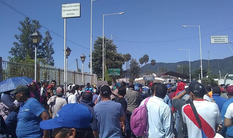 La Mesa Coordinadora de Desocupados del departamento San Martín bloqueó el paso por el Puente Internacional a las 11 horas de este lunes, en reiterado repudio al cese de obras de envergadura, entre ellos el gasoducto del NEA y la recuperación del Ramal C-15. La protesta forma parte de la agenda que el movimiento tiene preparado para 2019. Hay malestar de parte de los bagalleros, impedidos de trabajar por la manifestación.