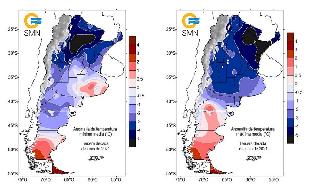 Junio cierra con tiempo frío, a causa de la intensa ola polar que tuvo lugar en los días precedentes; con temperaturas mínimas debajo de lo normal que provocaron heladas localizadas y generales en gran parte del norte salteño y sur del Estado Plurinacional de Bolivia; situación que afectó seriamente a las cosechas, sobre todo tomate. No obstante, el informe semanal señala que los vientos del trópico retornarán con moderado vigor,
