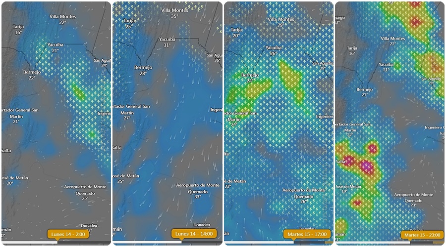 La región limítrofe entre el chaco salteño y el chaco formoseño, en tanto, podría llegar a temperaturas máximas muy sobre lo normal, con focos de 35 y 40 grados, incluso hacia las regiones internacionales con el sur boliviano y el norte paraguayo. Paralelamente, se producirán la lluvias de frente caliente, sin que por eso baje la temperatura, y el amplio foco de registros abundantes que se esperan, con posibles focos de tormentas, observarán precipitaciones moderadas a abundantes de entre 10 a 50 mm.