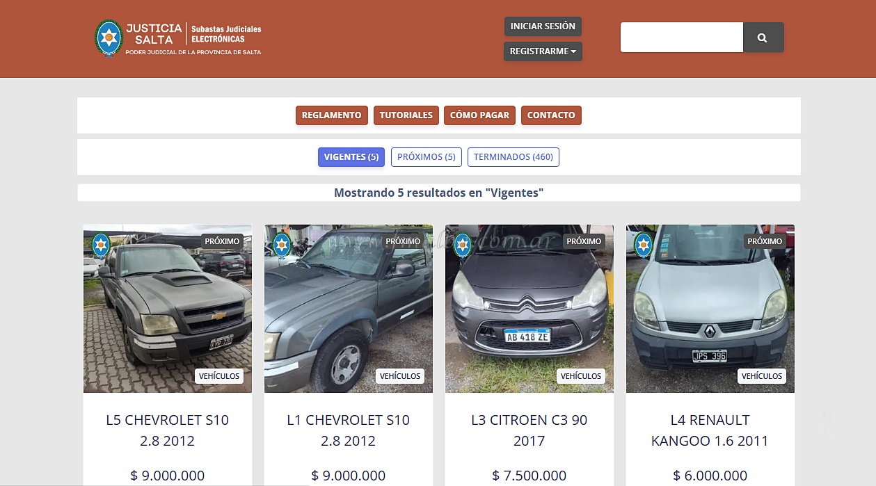 El lunes 23 de febrero por la mañana se abrirá el proceso de puja para la subasta de cinco vehículos pertenecientes al Ministerio Público de Salta, remate que se llevará a cabo de manera íntegramente virtual mediante la página web de subastas electrónicas del Poder Judicial de la provincia. Interesados ya pueden realizar las consultas.