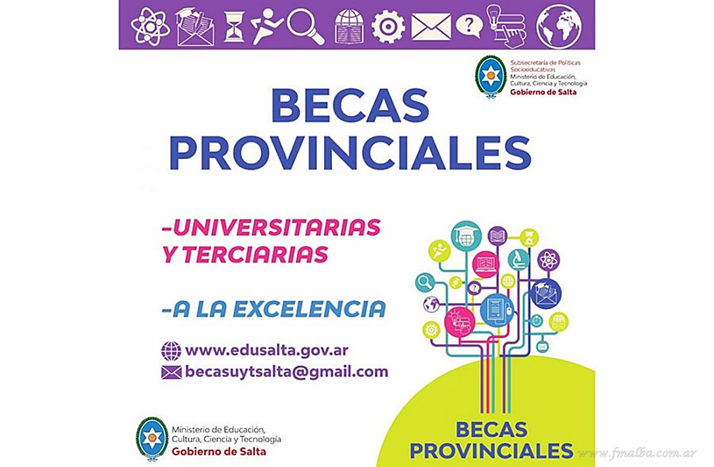 El Ministerio de Educación, Cultura, Ciencia y Tecnología de Salta informó que estudiantes de carreras de Nivel Superior Universitarias en Universidades Públicas o Privadas de la República Argentina o de Nivel Terciario, dictadas por Instituciones dependientes del Ministerio provincial ya pueden pre inscribirse de manera virtual para acceder a becas. El plazo cierra el 30 de abril.