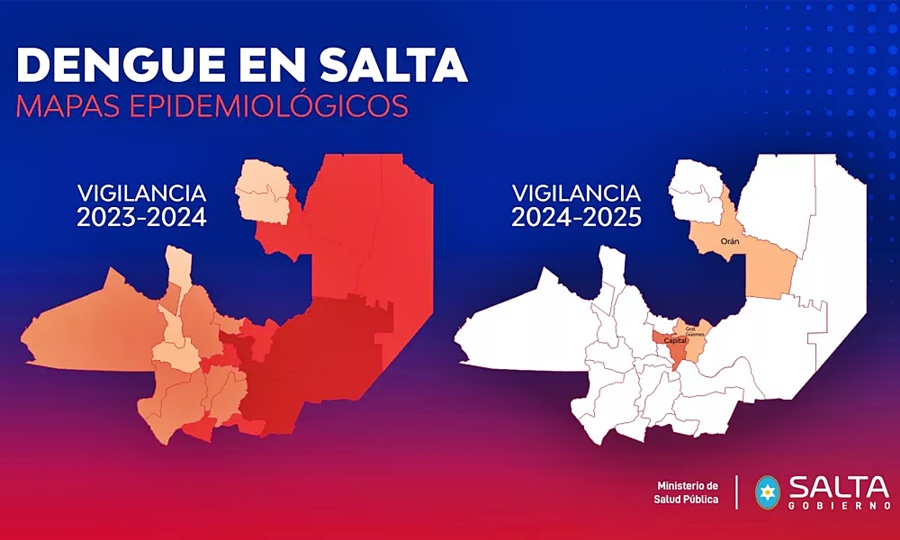 El mapa epidemiológico provincial de dengue, modificado en relación al año anterior; trasladándose de la región sur y este a la centro; muestra una tasa de incidencia en Capital de 1,9 casos por cada 100.000 habitantes. En Orán es de 0,4 casos/100 mil habitantes y, en General Güemes de 0,3 casos/100 mil habitantes. Anta, por ejemplo, en el periodo 2023-2024 anotó 3.975, Metán 7.704 y Rosario de la Frontera 5.632 casos/100 mil habitantes y este año fue de 0.