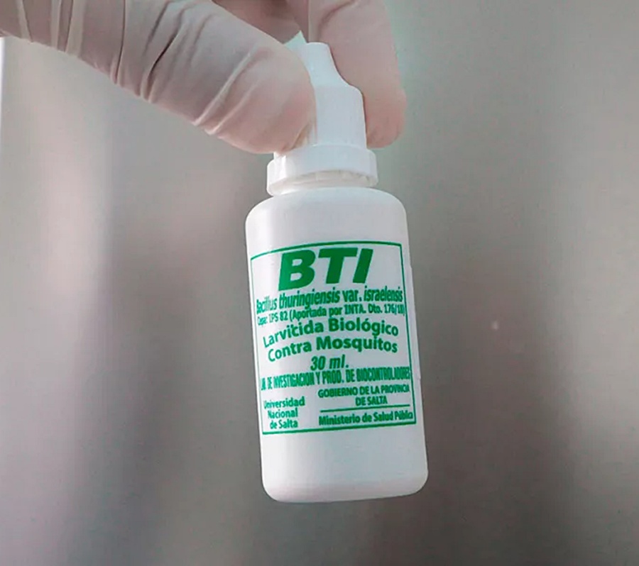 Este año distribuyeron más de 2.300 frascos de BTI (insecticida larvicida biológico), desarrollado íntegramente por científicos salteños, a 29 municipios de la provincia. Se trata de un compuesto proteico sintetizado de la bacteria Bacillus Thuringiensis (serotipo Israelensis), que elimina las larvas de insectos de los géneros Aedes aegypti, Anopheles, Culex y Simulium; que incluyen a los mosquitos vectores del dengue, zika, chikungunya, fiebre amarilla, malaria e incluso a la “mosca negra” (jejenes).