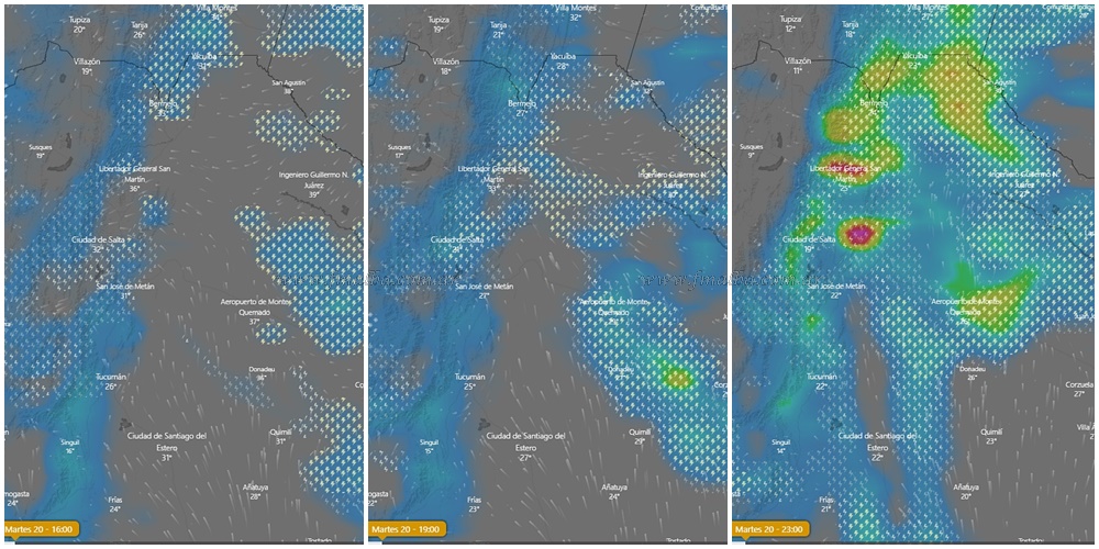 Para la zona comprendida por el centro y este de Salta, y el centro y este de Jujuy, se esperan valores de precipitación acumulada entre 30 y 60 mm hasta la mañana del miércoles 21, producto del avance de un frente frío proveniente de la región pampeana.