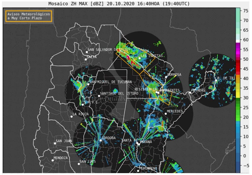 El aviso de alerta por tormentas fuertes del SMN se extiende para las regiones centro y este de Salta, centro y este de Jujuy, norte de Santa Fe, sudeste y norte de Santiago del Estero. Para el norte se espera la caída de entre 30 a 60 mm de agua.