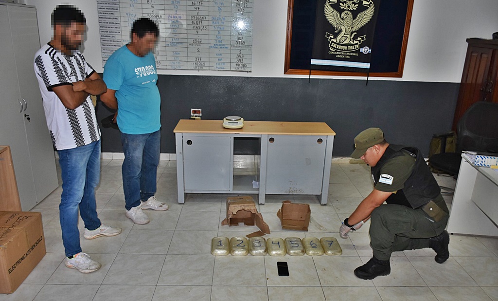 En presencia de testigos, los gendarmes inspeccionaron el automovíl, en el que hallaron dos cajas que contenían siete paquetes rectangulares. Al realizar la prueba de campo Narcotest, la misma arrojó resultado positivo para cocaína con un peso total de 7 kilos 440 gramos.