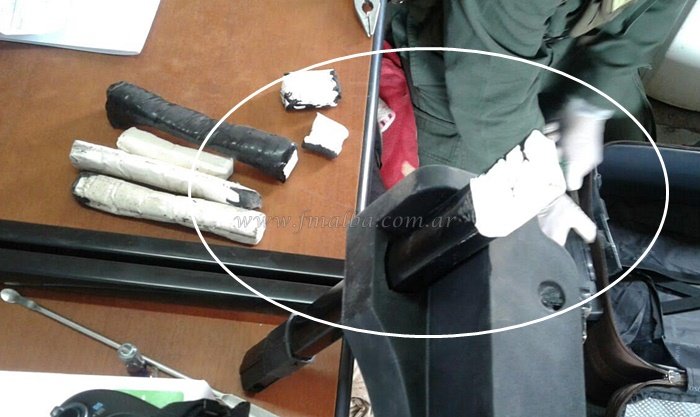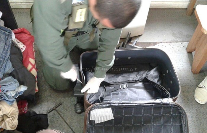 Los funcionarios detectaron; acondicionados en el interior de las estructuras metálicas de ambas valijas; una sustancia blanca. Al ser sometida a las pruebas de campo Narcotest, arrojaron resultado para cocaína. Un total de 1 kilo 20 gramos fue secuestrado.