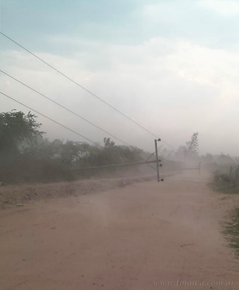 Vientos procedente del cuadrante norte, con velocidades por arriba de los 30 km/h y ráfagas de hasta 50 km/h provocaron la caída de tres postes del tendido eléctrico, motivo por el cual toda la localidad de Salvador Mazza se quedó sin energía. Esta semana, debido al calor e incendios forestales, el servicio se vio resentido más de una vez en la zona de frontera.