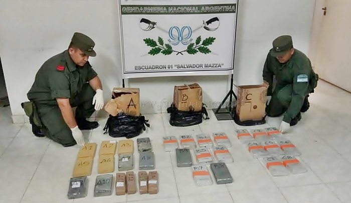 Gendarmería Nacional.- Efectivos Escuadrón 61 incautaron 30 kilos 345 gramos de cocaína en Salvador Mazza cuando realizaban patrullajes nocturnos por la zona del Sector 3, en la Quebrada Internacional. Intervino la Fiscalía Federal y el Juzgado Federal de la ciudad de Orán.