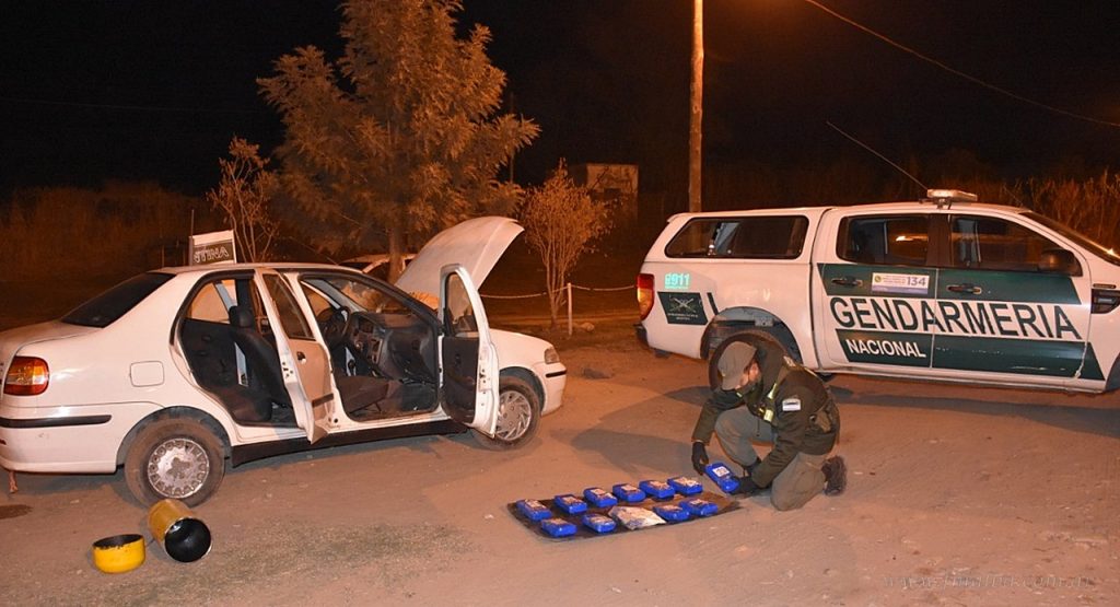 Una vez allí extrajeron de ese tubo de gas 12 paquetes rectangulares; los cuales contenían una sustancia blanca, que a las pruebas de campo Narcotest dio resultado positivo para “cocaína”. El peso total fue de 12 kilos 598 gramos. La Fiscalía interviniente orientó el decomiso del estupefaciente como así también del rodado y de documentación de interés para la causa.