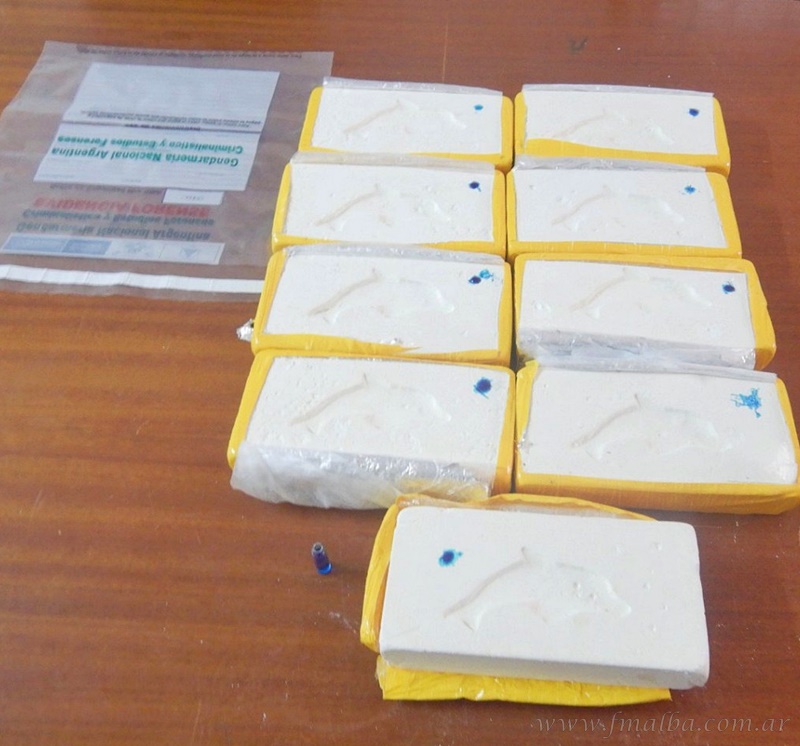 Ante el hecho, le indicaron que abriera la mochila que portaba y en el interior descubrieron nueve ladrillos que contenían una sustancia blancuzca; con el sello estampado de un delfín; además de otros artículos personales. Como ordena el protocolo de actuación, los gendarmes efectuaron las pruebas de campo Narcotest, confirmando que se trataba de cocaína y de un peso total de 9 kilos 242 gramos.