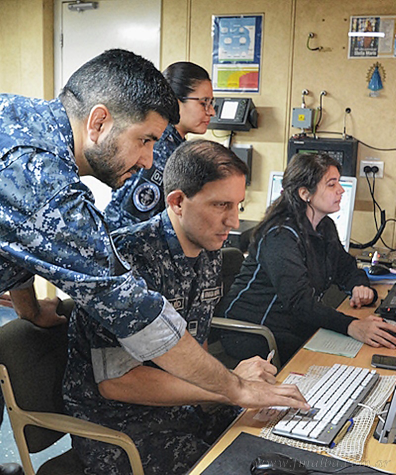 Por el tipo de escenarios donde se realizan las actividades antárticas (incluyen operaciones aéreas) también toman en cuenta parámetros como profundidad, corrientes y mareas; y dado los cambios en la condición del mar en la zona, que también varía, se clasifica por la presencia en tipo, origen, tamaño y velocidad de hielos y témpanos. La supervisión del estado glaciológico es analizada mediante imágenes ópticas y de radar de apertura sintética, usando plataformas satelitales. “Es un prestigio ser Subjefe de la Base de Río Grande porque fue mi primer destino como Cabo Segundo recién egresado; y a su vez, gratificante poder realizar hoy campañas antárticas a bordo del rompehielos”, señala en diálogo desde la Antártida. Su anhelo es continuar creciendo profesionalmente en distintos destinos navales: “Me encantaría poder cumplir funciones como Meteorólogo a bordo de la fragata ARA Libertad”.
