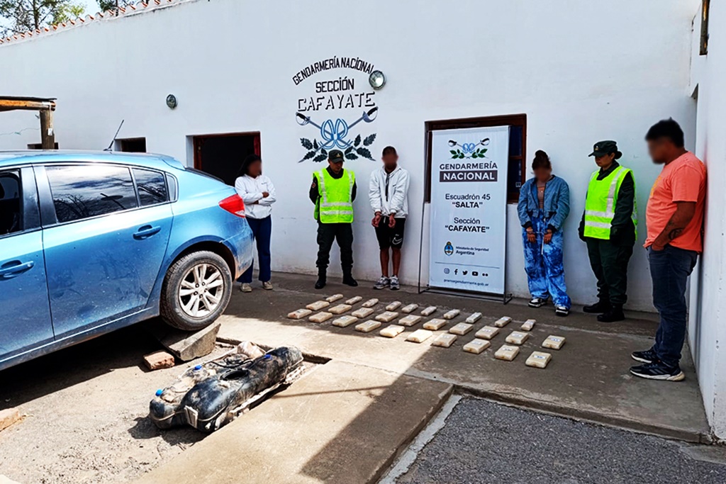 El procedimiento que dio origen a la causa se realizó el 9 de marzo pasado en la ruta 68, a la altura de Cafayate, cuando personal de Gendarmería Nacional detuvo un Chevrolet Cruze conducido por Gastón Gabriel Garino, con Aguirre como acompañante. En la requisa se hallaron 30 paquetes de cocaína con una pureza superior al 70%, equivalentes a más de 176 mil dosis.
