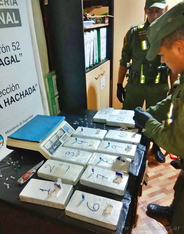 Inmediatamente siguieron con las pruebas para determinar de qué tipo de sustancias se trataba, tarea que realizaron integrantes del área de Criminalística y Estudios Forenses de la fuerza, que confirmaran resultado positivo para cocaína. En total, se interceptaron 13 kilos 605 gramos, por lo que ambos involucrados quedaron detenidos por disposición de la Fiscalía Federal de Tartagal.
