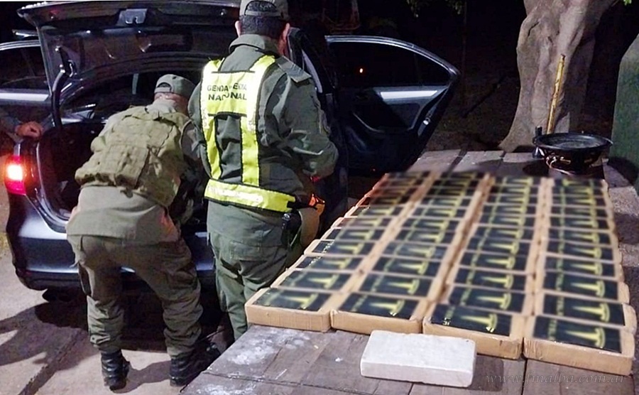 La Sección “Senda Hachada” del Escuadrón 52 “Tartagal” detuvo a dos hombres que viajaban con 46 kilos de cocaína ocultos en el sector del baúl de auto en que viajaban con destino a San Miguel de Tucumán. Ambos habían partido desde Salvador Mazza y la droga había sido disimulada en un parlante de gran dimensión; lo cual fue detectado por el can antinarcóticos de la fuerza. Intervino la Fiscalía Federal de Tartagal.