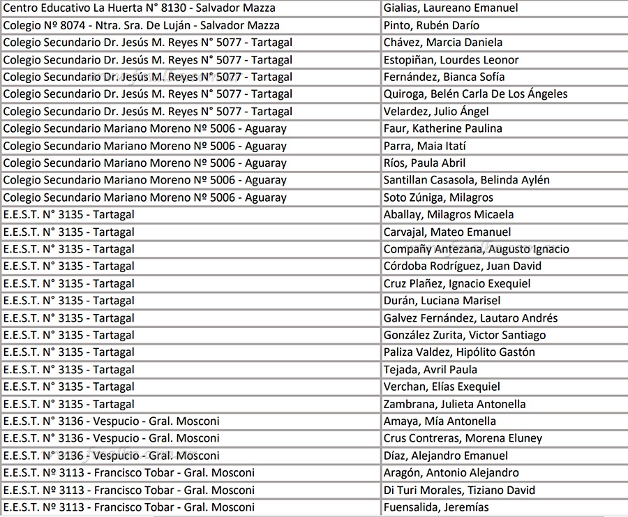 Las Becas se otorgan anualmente a jóvenes estudiantes de Salvador Mazza, Aguaray, Tartagal y General Mosconi en Salta. En todo el país, tras la convocatoria lanzada en Marzo, se inscribieron casi 5.000 estudiantes, quedando en el corte final 1.100 chicos. Por Tartagal fueron 36 jóvenes los becados, por Salvador Mazza 3, en Aguaray 26 y en General Mosconi 15.