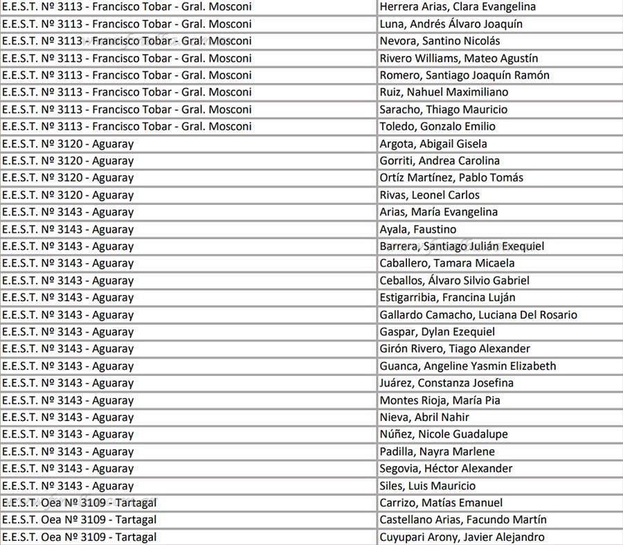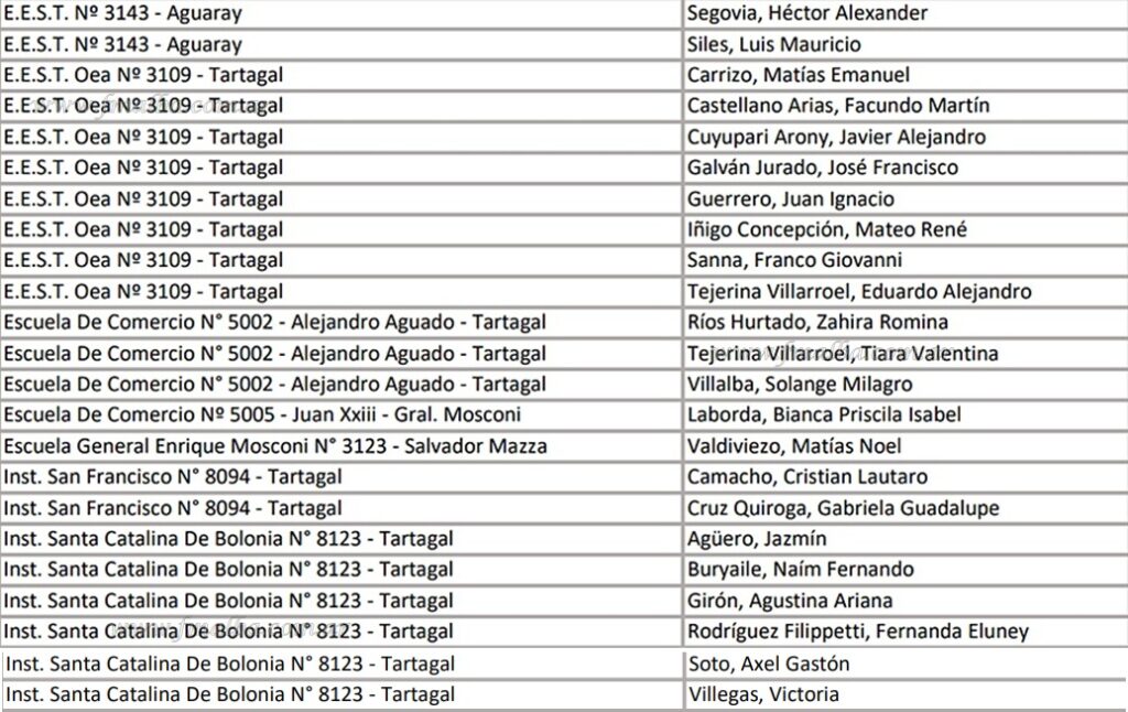 Del total de 80 estudiantes que recibieron las Becas Rocca 2025 Cuenca NOA, tres jóvenes fueron reconocidos de manera especial por ser la cuarta vez que reciben el beneficio: Milagros Micaela Aballay (4° Ciclo Superior EET 3135 – Tartagal), Mateo Rivero Williams (3° Ciclo Superior EET 3113 Francisco Tobar – Gral. Mosconi) y Tiziano Turi Morales (3° Ciclo Superior EET 3113 Francisco Tobar – Gral. Mosconi).