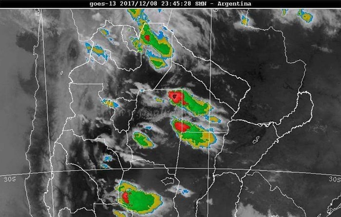 El organismo del clima emitió el alerta a las 21:30 de este viernes 8. La zona de cobertura incluye al este de Salta, este de Jujuy y este de Catamarca; además de Chaco, Córdoba, este de La Rioja, norte de San Luis, centro y norte de Santa Fe, Santiago del Estero y Río de la Plata. exter.ior. En Santiago llovía a las 22 horas.