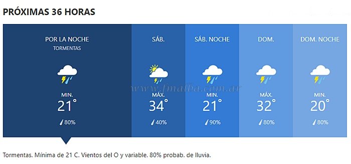 Para el sábado se esperan 34 grados de máxima y lluvias al cerrar la tarde, mientras que para el domingo 10 se espera una jornada lluviosa con 32 como pico.