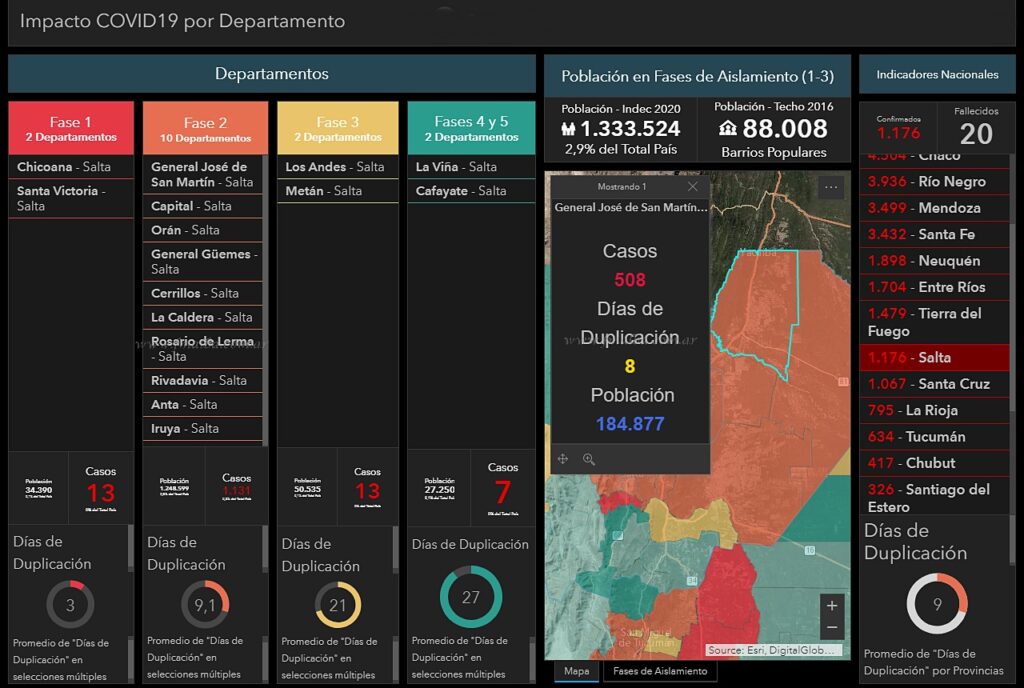 La provincia de Salta cuenta ya 1.176 afectados por Covid-19, 480 ya se encuentran recuperadas y un conteo de 20 decesos. El departamento San Martín concentra 508 de la cifra provincial de positivos al 18 de agosto, con la ciudad cabecera; Tartagal; concentrando el 87 por ciento.