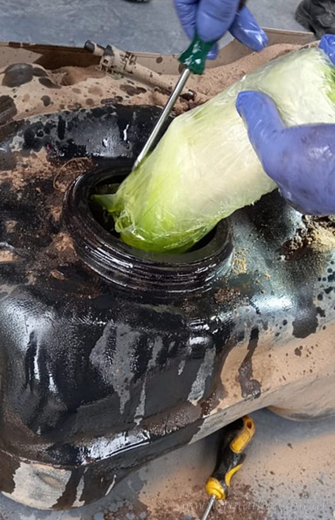 Ante testigos, y con la ayuda del can antinarcóticos “Cosmo”, profundizaron la búsqueda y al abrir el tanque de combustible, extrajeron 50 paquetes rectangulares que contenían 28 kilos 218 gramos de cocaína, total que fue secuestrado junto con 85.920 pesos argentinos y documentación de interés; además de detener al conductor.