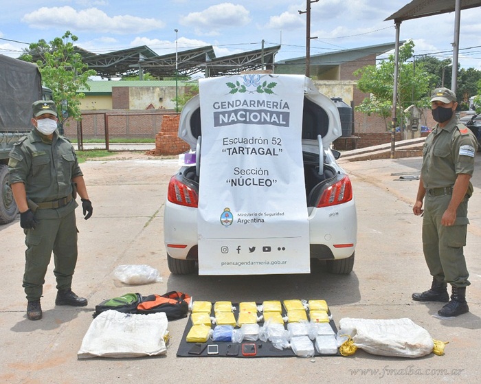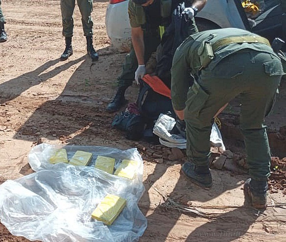 El punto de la inspección sucedió a la altura del Paraje “La Porcelana”. Al inspeccionar el auto, encontraron en el baúl 20 paquetes tipo ladrillos, con una sustancia blancuzca en su interior. A las pruebas de campo Narcotest, las mismas arrojaron resultado positivo para cocaína, con un peso total de 21 kilos 145 gramos.