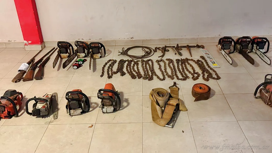 Se secuestraron 2 camiones, 2 camionetas, 5 tractores, 5 acoplados, 5 motos, motosierras, armas de fuego, dinero en efectivo de moneda argentina y en moneda extranjera, entre otros elementos de interés para la causa; y se clausuraron dos aserraderos. En la causa intervienen la Fiscalía Penal de Tartagal y el Juzgado de Garantías en feria.