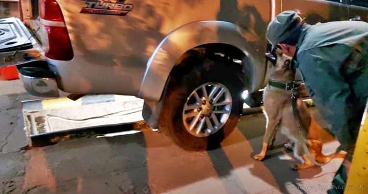 A la altura del kilómetro 28, personal del Escuadrón 54 Aguaray detuvo la marcha de la camioneta marca Toyota que circulaba en sentido oeste-este y que era conducida por López; a su vez acompañado por Moya y Brítez. Los gendarmes advirtieron que uno de los tornillos del tanque de combustible había sido manipulado, por lo que; en cumplimiento por lo dispuesto desde la Sede Fiscal; ordenaron trasladar el vehículo al puesto fijo del mismo Escuadrón. A la revisión de rigor, un can antinarcóticos reaccionó a rastros de estupefacientes. Con un escáner móvil obtuvieron imágenes sospechosas en el tanque de combustible y así procedieron a desarmarlo para revisar el interior; encontrando 22 paquetes que contenían cocaína (peso total de 18 kilos y 610 gramos).