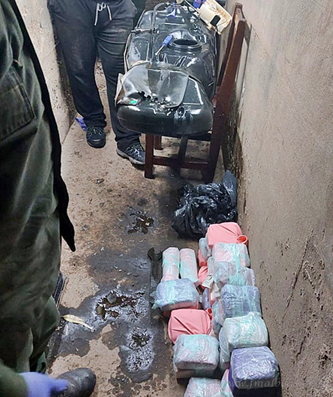 A la altura del kilómetro 28, personal del Escuadrón 54 Aguaray detuvo la marcha de la camioneta marca Toyota que circulaba en sentido oeste-este y que era conducida por López; a su vez acompañado por Moya y Brítez. Los gendarmes advirtieron que uno de los tornillos del tanque de combustible había sido manipulado, por lo que; en cumplimiento por lo dispuesto desde la Sede Fiscal; ordenaron trasladar el vehículo al puesto fijo del mismo Escuadrón. A la revisión de rigor, un can antinarcóticos reaccionó a rastros de estupefacientes. Con un escáner móvil obtuvieron imágenes sospechosas en el tanque de combustible y así procedieron a desarmarlo para revisar el interior; encontrando 22 paquetes que contenían cocaína (peso total de 18 kilos y 610 gramos).