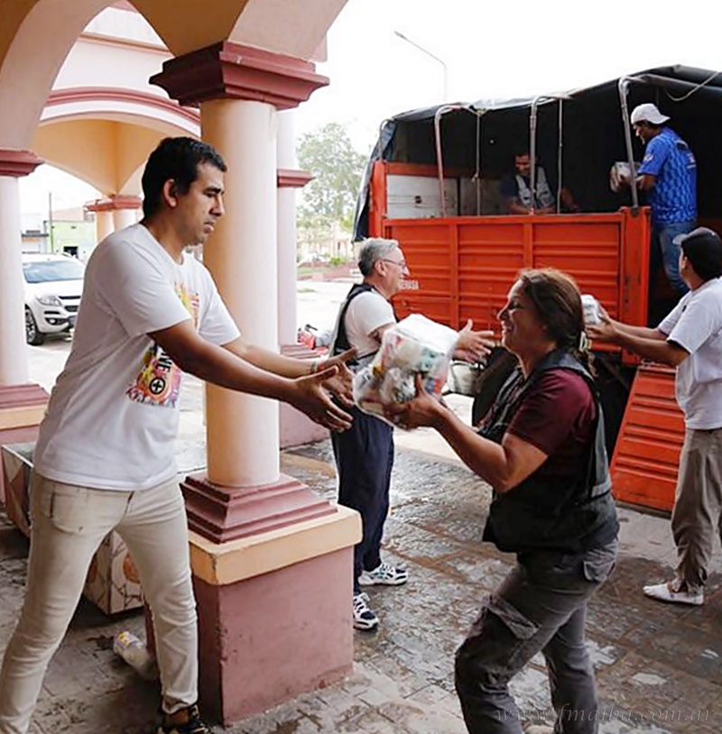 El Ministerio de Desarrollo Social distribuyó módulos alimentarios, agua, chapas, colchones, calzados, frazadas, pañales y demás elementos de primera necesidad a residentes de cuatro barrios en Colonia Santa Rosa; Orán; afectados por el intenso temporal registrado el domingo y lunes en la región.