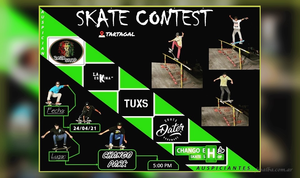 Retomando la edición de la competencia zonal “Skate Contest”, este sábado por la tarde, la pista de ubicada en Avenida Dorrego y Ruta Nacional 34 será el punto de encuentro de los skaters en Tartagal. La organización, a cargo de Federico Aspeti, informó que se solicitó colaborar con un alimento no perecedero tanto participantes como público en general. Todo lo que se recaude en el evento se entregará posteriormente a un merendero o escuela por los mismos skaters.