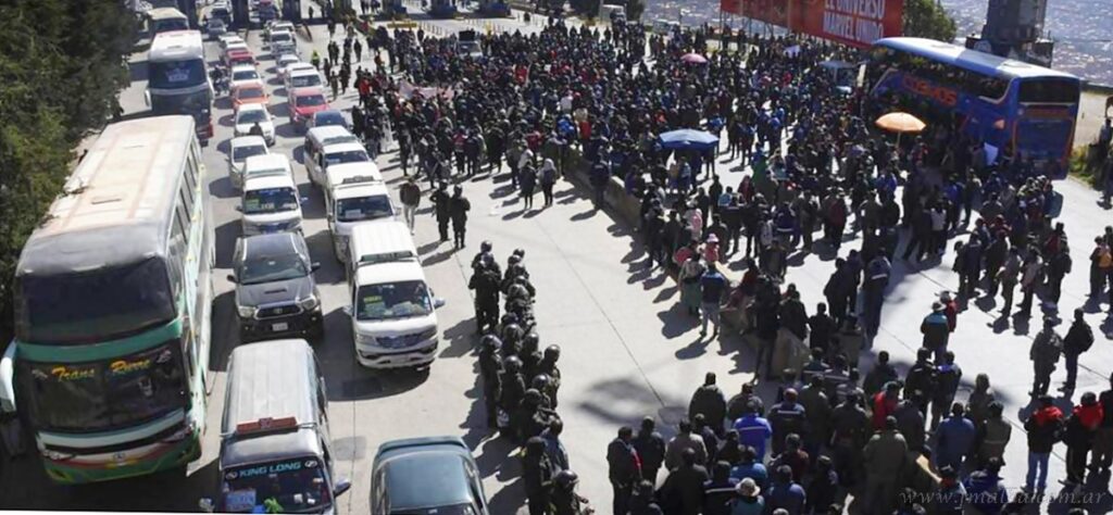 El paro y medidas de bloqueo que el transpore internacional viene llevando adelante en Bolivia anunció que extenderán la protesta a las fronteras. Este lunes 10 se reunieron en la capital del departamento Oruro la dirigencia del Transporte Pesado Internacional con representantes de Tarija, Chuquisaca, La Paz, Oruro, Santa Cruz, Potosí y Cochabamba. Se decidió un paro indefinido con bloqueo de rutas y cierre de fronteras, además de incluir el pedido de renuncia del presidente de Impuestos Nacionales, Mario Cazón; y del ministro de Obras Públicas, Iván Arias Durán.