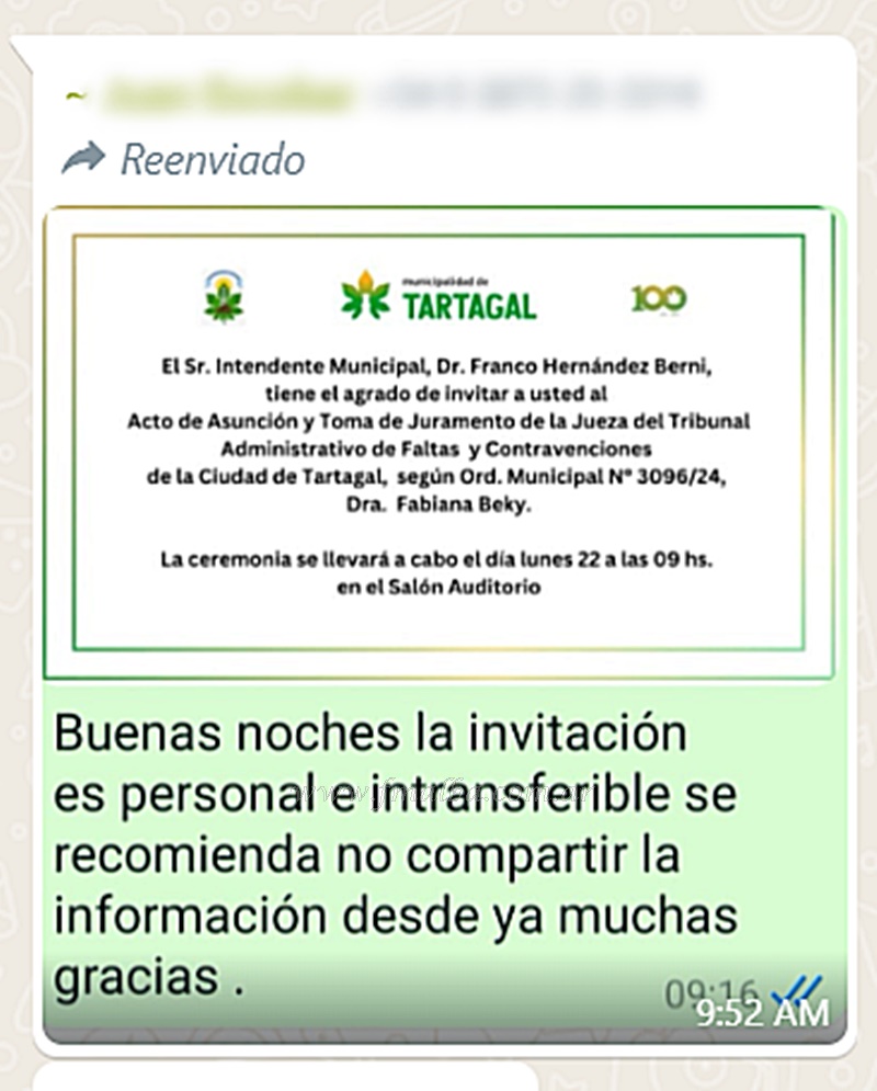 El Tribunal de Faltas hoy no atendió al público hoy lunes 22 de julio, retomando la misma mañana martes 23. Durante el fin de semana se difundieron imágenes captadas por cámaras de seguridad donde se podía observar el cambio de cerraduras del organismo el sábado por la tarde. Aparte, el Dr. Farid Obeid fue notificado el viernes a las 21.20 horas su cesantía al cargo (NR: nota ingresada bajo puerta de su domicilio particular). Con la designación de la jueza Becky, Hernández Berni consolida el poder en Tartagal, con el control del Concejo Deliberante y el Tribunal de Faltas.