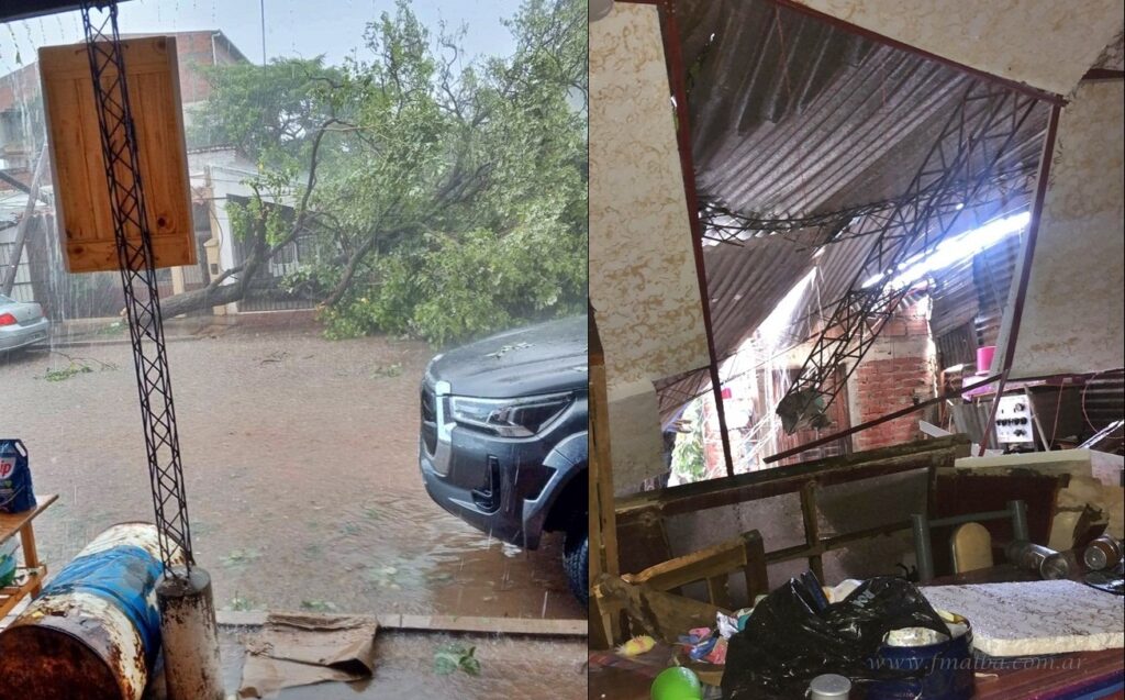 Durante varios minutos, las piedras de hielo (granizo) golpearon con fuerza, aumentando la sensación de caos y emergencia. Entre los incidentes más destacados se encuentra la caída del tinglado del galpón donde estacionan los micros de la empresa Veloz del Norte, ocasionando importantes daños tanto en la estructura como en algunas unidades de transporte.