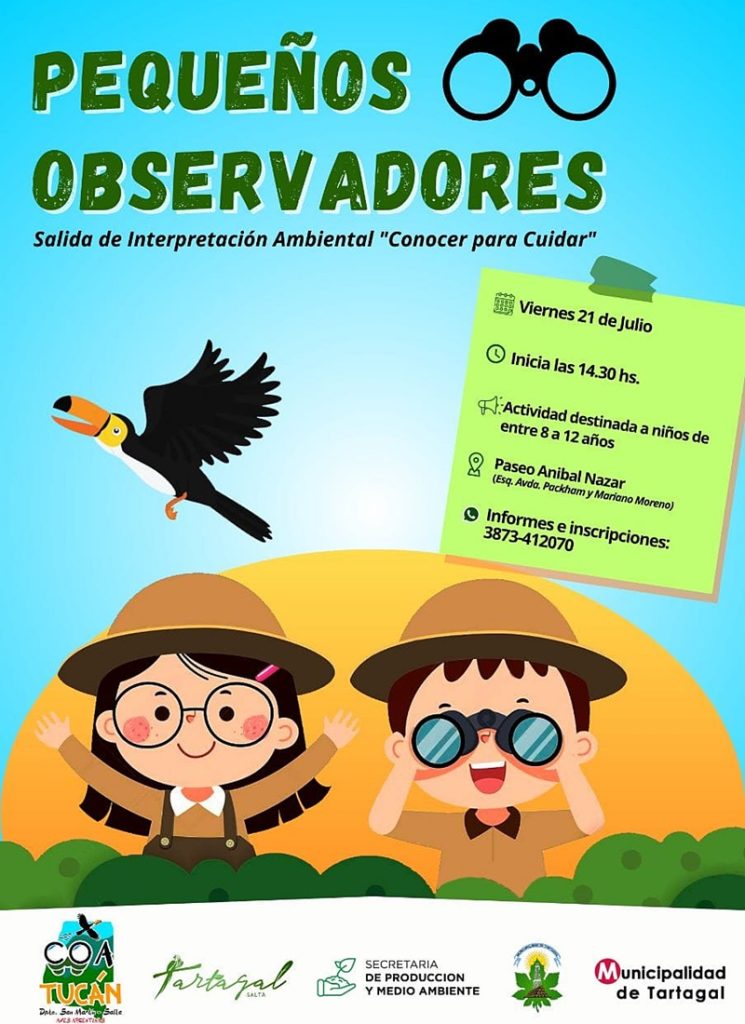 La actividad es organizada en conjunto entre el Club de Observadores de Aves (COA) Tucán y las áreas municipales de Turismo y Producción, bajo el objetivo de acercar el avistamiento de aves a niños de entre 8 a 12 años de edad. “El COA impartirá nociones sobre la riqueza de aves y la diversidad en su hábitat natural, características, colores, comportamientos y todo sobre el cuidado y protección”, detalló la Ing. Fernanda Pérez; directora de Medio Ambiente.