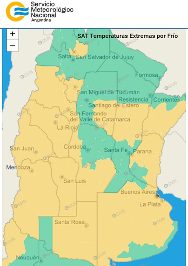 »Alertas por frío extremo. La región Patagónica es la única con alertas rojas por marcas extremas de bajas temperaturas